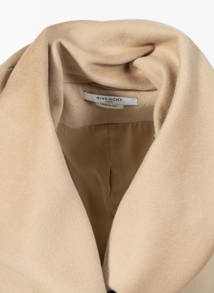 GIVENCHY Cappotto in lana beige con collo avvolgente. Riporta taglia 40....