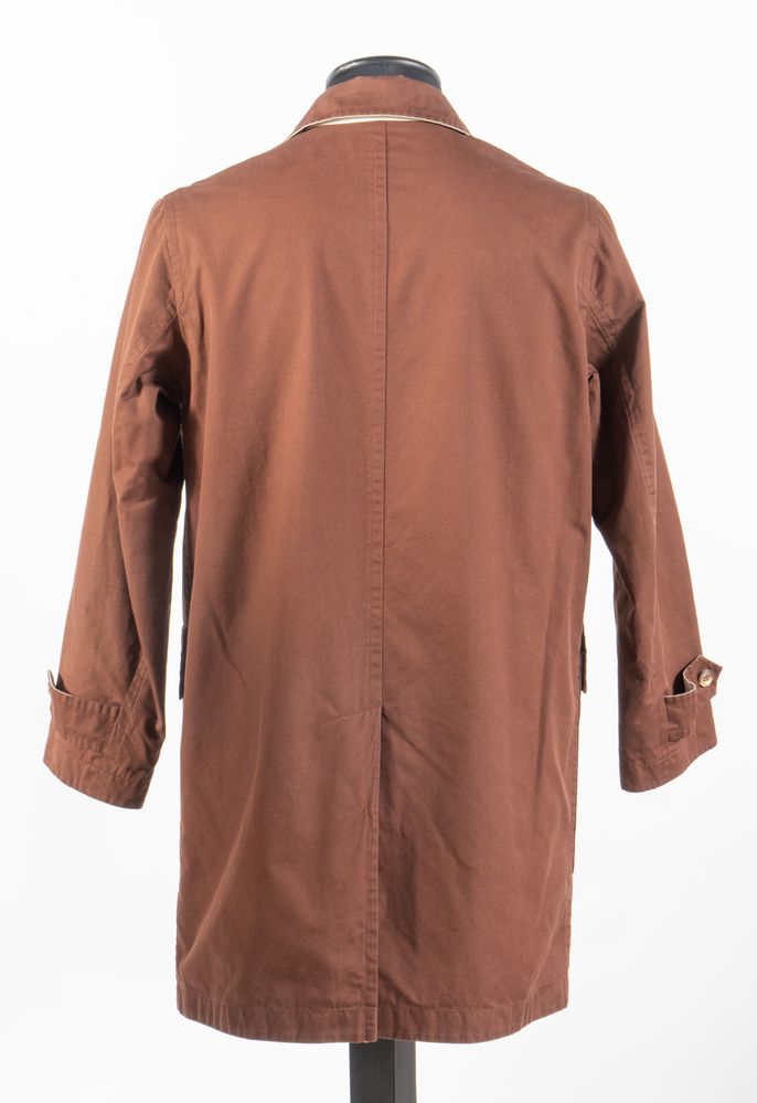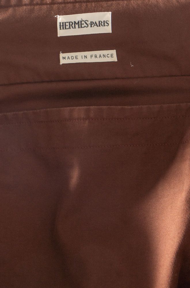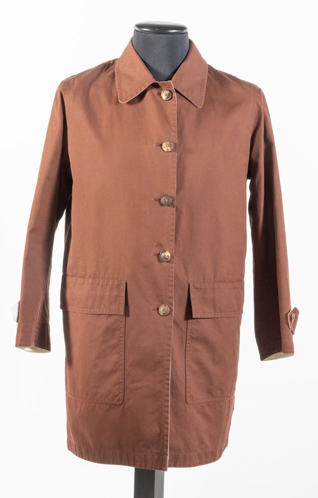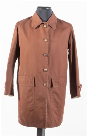 HERMÈS Impermeabile doubleface in tela marrone con interno color panna. Taglia non riportata: veste una IT 44 circa. Reca etichetta Hermès Paris Made In France. (Difetti e mancanze)