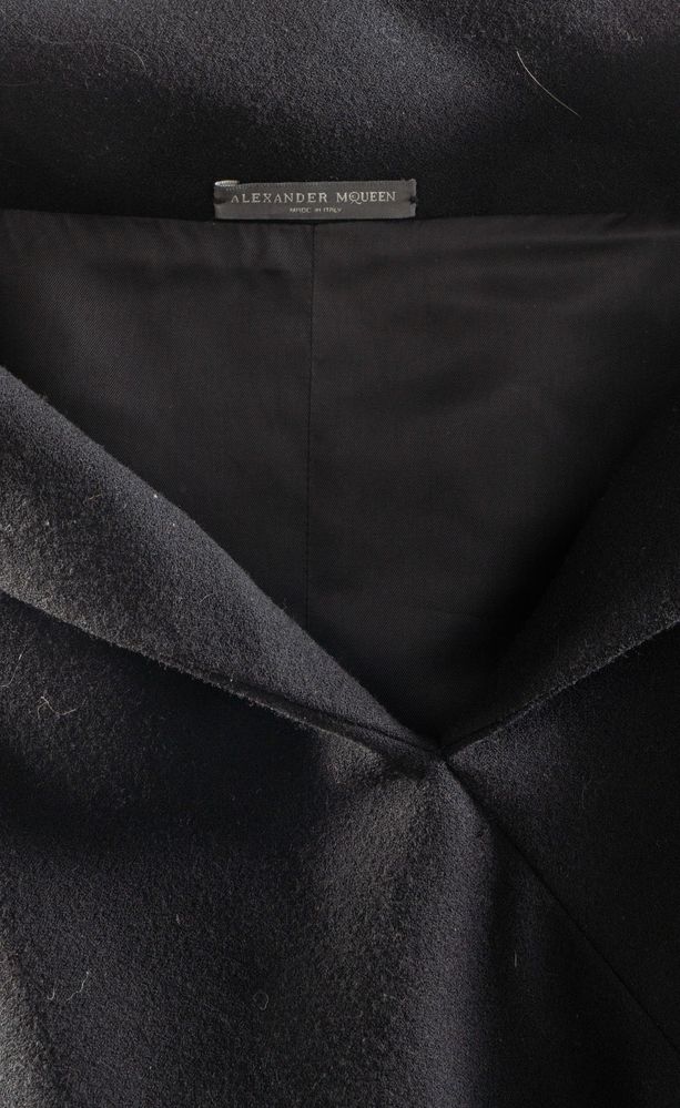 ALEXANDER MCQUEEN Abito in lana nero. Riporta taglia 38. Composizione esterno: 100% lana. Composizione fodera interna: 52% acetato e 48% viscosa. Reca etichetta Alexander McQueen Made in Italy.