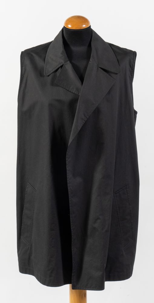 HERMÈS Gilet smanicato in tela nera. Taglia non riportata: 42-44 circa. Reca etichetta Hermès-Paris Made in France. (Difetti e mancanze)