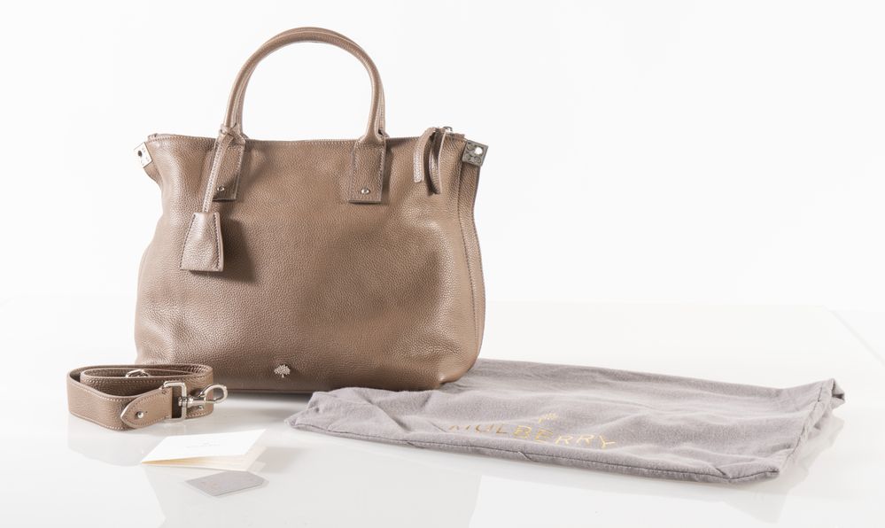 MULBERRY Borsa a mano modello Alice in pelle martellata marrone con dettagli in metallo argentato e tracolla removibile. Cm 26x30x14. Altezza con manici: cm 37. Reca marchi Mulberry e codice di riferimento prodotto. Accompagnata da garanzia e cartellino con dettagli e specifiche del prodotto. Corredata di dustbag originale.