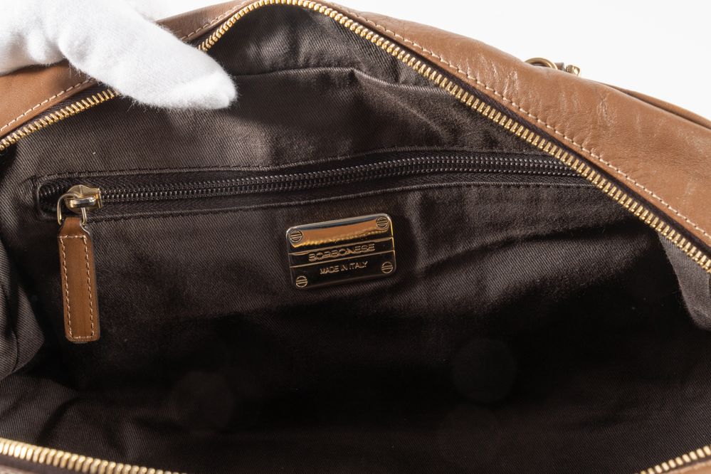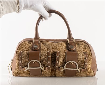 BORBONESE Borsa a bauletto in pelle di tapiro con dettagli in pelle marrone e metallo dorato. Reca due tasche davanti con fibbia e borchie. Cm 16x37x19. Altezza con manici: cm 30. Internamente foderata di tela marrone. Reca marchi ed etichetta Borbonese, Borbonese Made in Italy e codice di riferimento prodotto. (Lievi difetti)