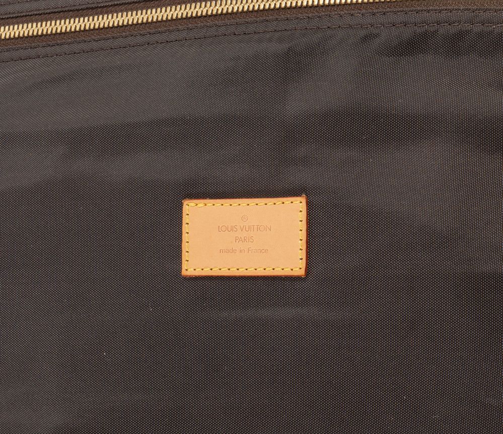 LOUIS VUITTON Porta abiti pieghevole in tela monogram con rifiniture in cuoio e dettagli in metallo dorato. Reca manico e tracolla regolabile. Dimensioni chiuso: cm 58x60x25. Dimensioni aperto: cm 101x60x11. Interno rifinito in tessuto marrone. Riporta machi LV, Louis Vuitton, Louis Vuitton Paris Made in France e codice di riferimento prodotto. (Difetti)