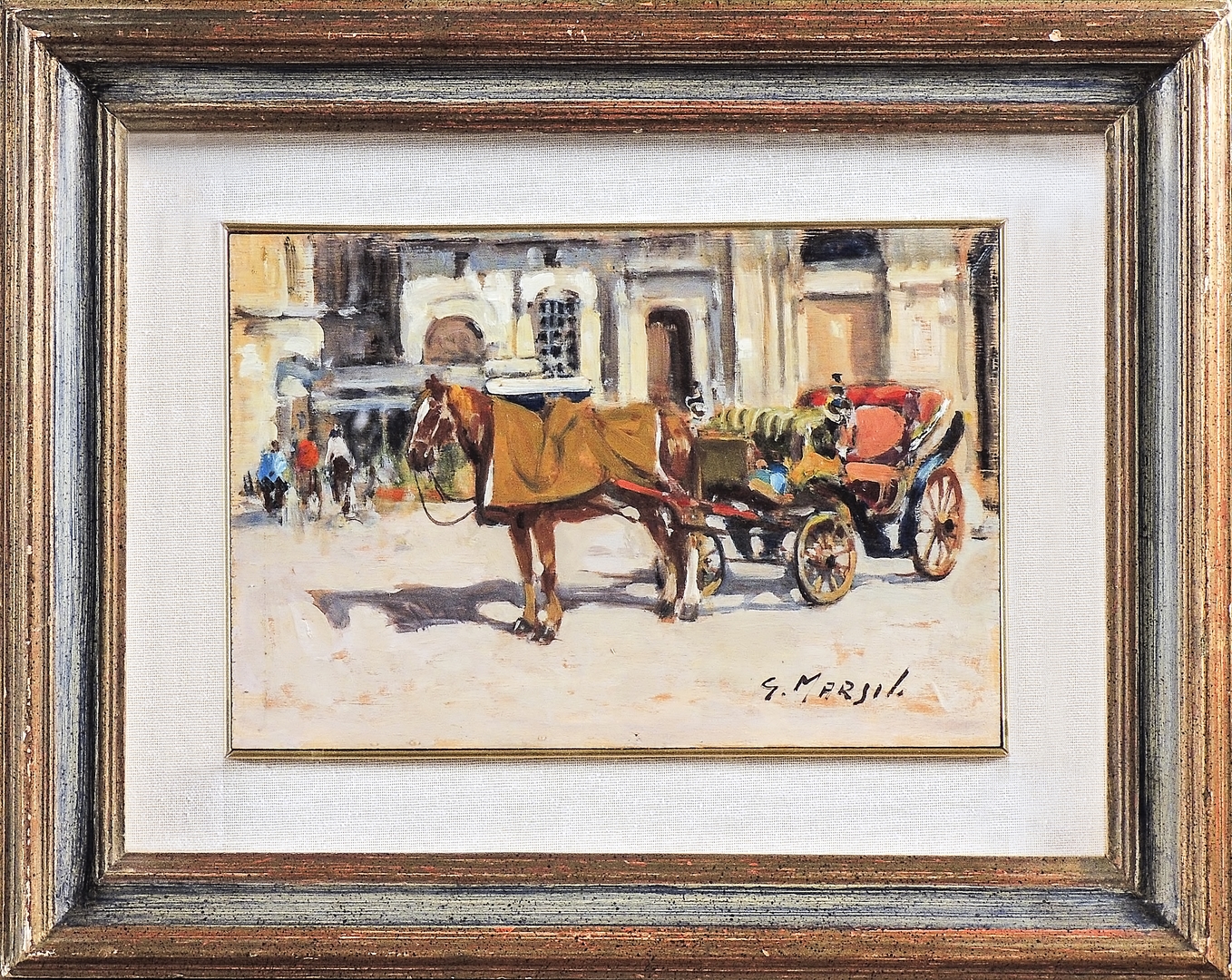 GRAZIANO MARSILI Carrozzella fiorentina olio su tavoletta, firmato, al verso...