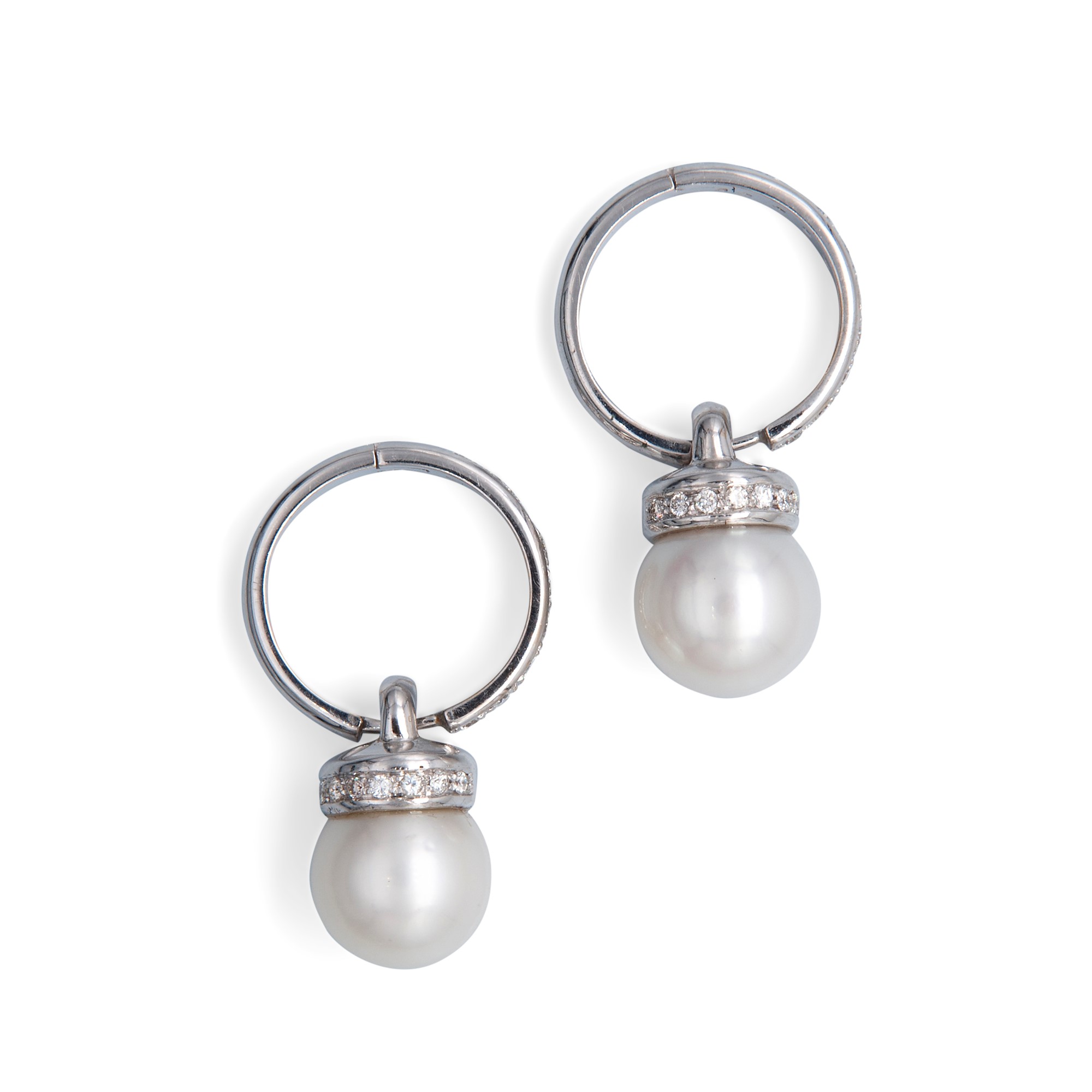 Oro bianco 750/000, perle mm 12, brillanti ct. 1,10 ca., prob. G - VVS.