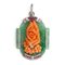 Pendente in oro, brillanti, rubini, corallo su elemento in giada