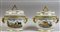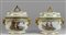 Coppia di rinfrescatoi in porcellana policroma di Meissen (uno senza coppa interna) decorati con scene campestri