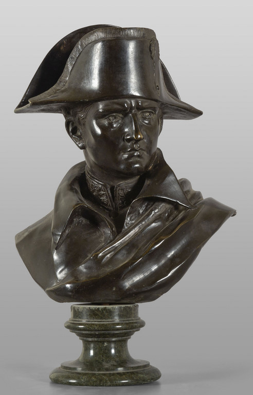 Napoleone busto in bronzo a patina scura poggiante su base in marmo sec.XIX