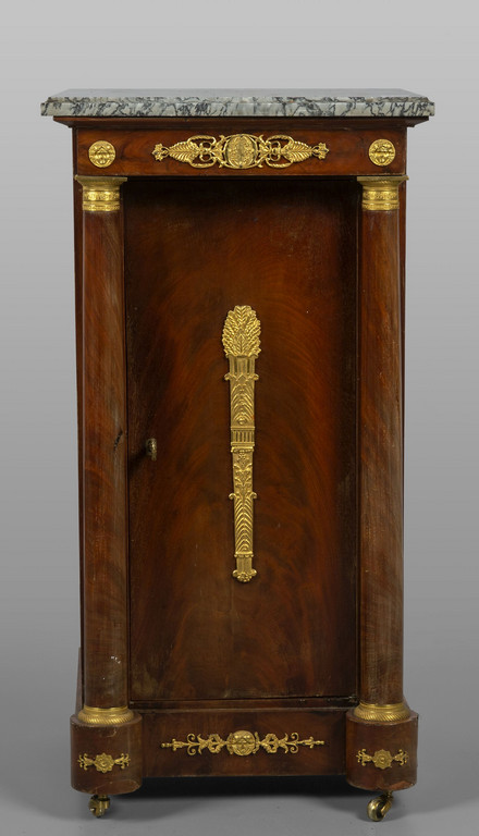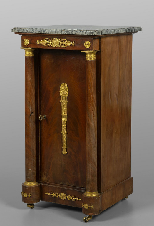Comodino Impero in mogano ricca decorazione in bronzo dorato piano in marmo Francia sec.XIX