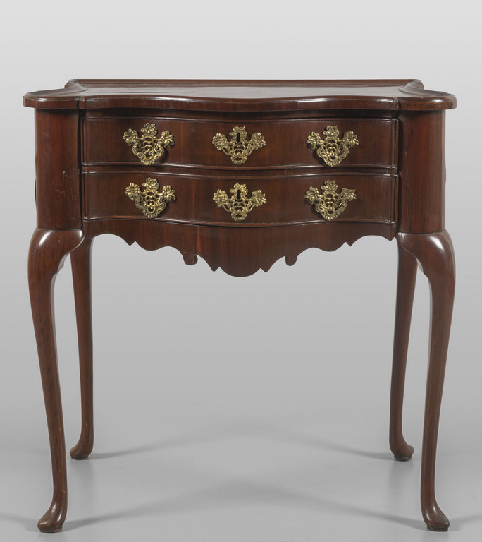 Console in mogano movimentata sul fronte e sui fianchi due cassetti Inghilterra sec.XIX