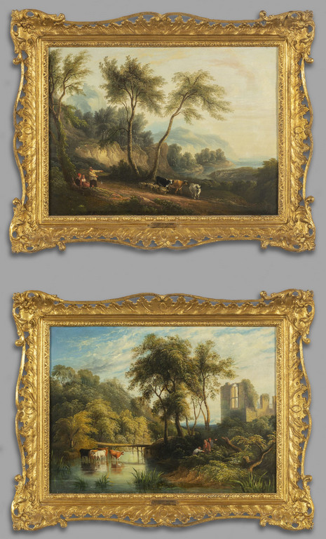 A.W.Copley Fielding (1787-1855) 'Paesaggi agresti animati' coppia di olii