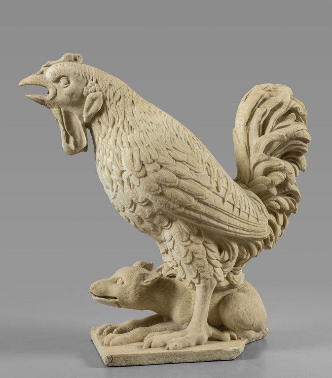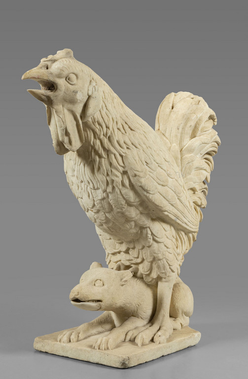 Gruppo in marmo raffigurante un gallo ed una volpe sec.XIX