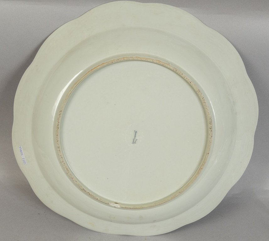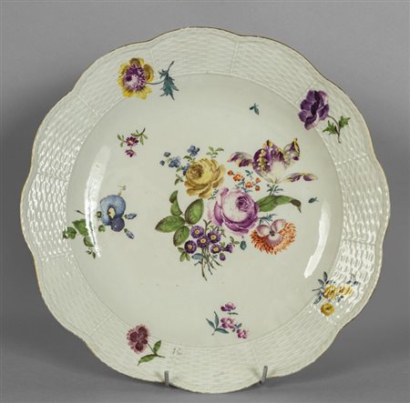 Grande piatto in porcellana di Meissen decorato in policromia a fiori su fondo bianco sec.XX