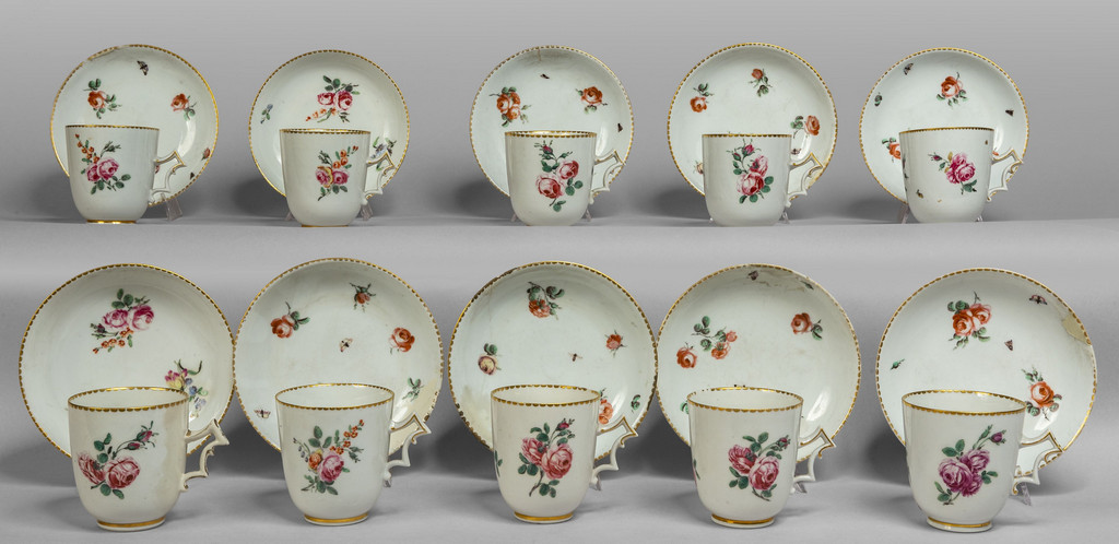 Dieci tazzine con piattino in porcellna decorata a fiori fine sec.XVIII (restauri)