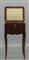 Tavolino da lavoro lastronato ed intarsiato a motivi floreali in legni vari cassettino laterale decorazioni in bronzo dorato Francia sec.XVIII