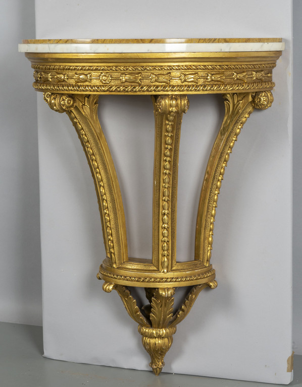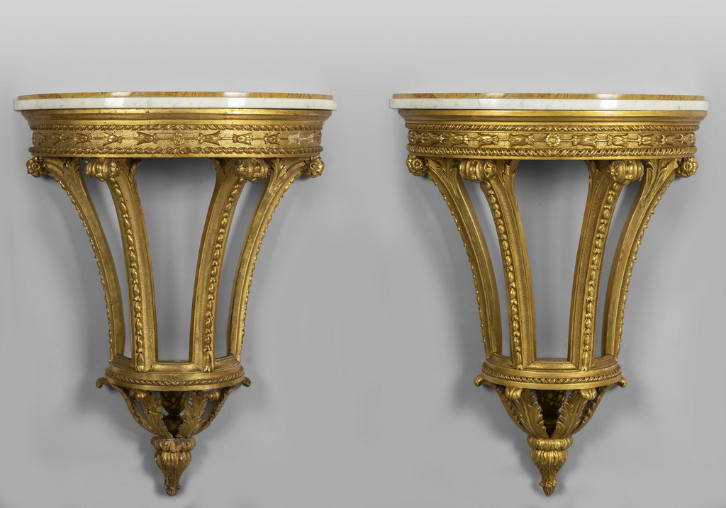 Coppia di console Luigi XVI a mezzaluna in legno intagliato e dorato Roma II metà sec.XVIII