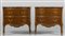 Coppia di comò Luigi XIV movimentati sul fronte e sui fianchi due casetti lastronati in legni vari a marquetterie profili in metallo dorato piano in breccia violacea Italia Meridionale I metà sec.XVIII
