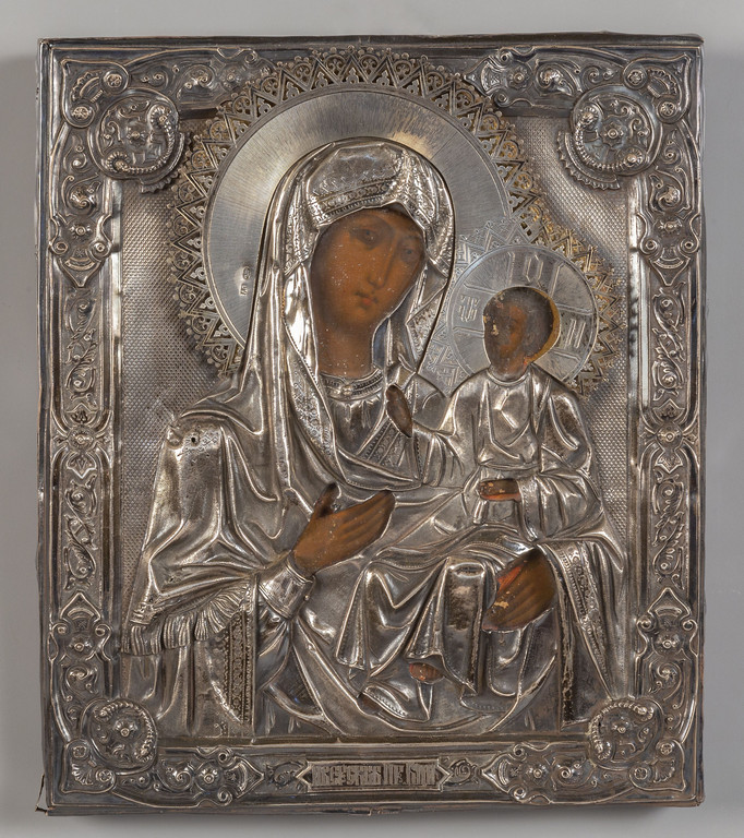 Madonna con Bambino icona con riza in argento d.ta 1890 e punzone dell'argentiere