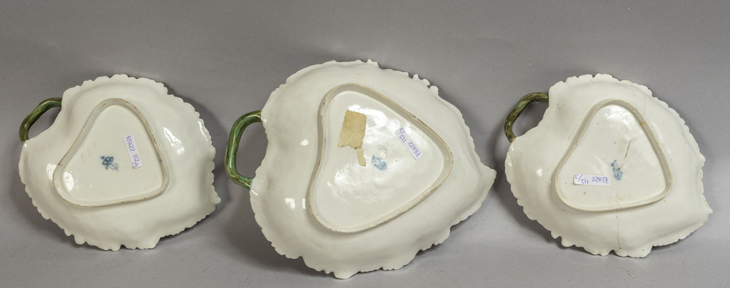 Tre foglie in porcellana decorata a fiori in policromia su fondo bianco Frankental sec.XVIII