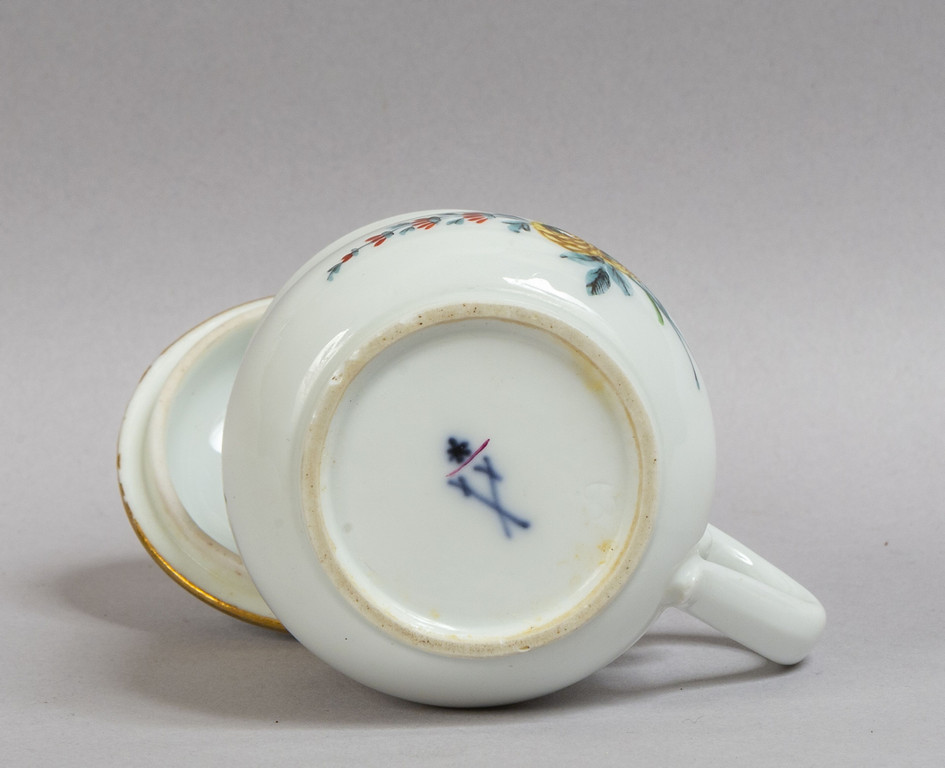 Sette più sette cremierine in porcellana di Meissen decorate in policromia a fiori su fondo bianco sec.XIX