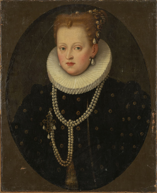 Scuola fiamminga sec.XVII 'Ritratto di dama con collare bianco e collana di perle' olio