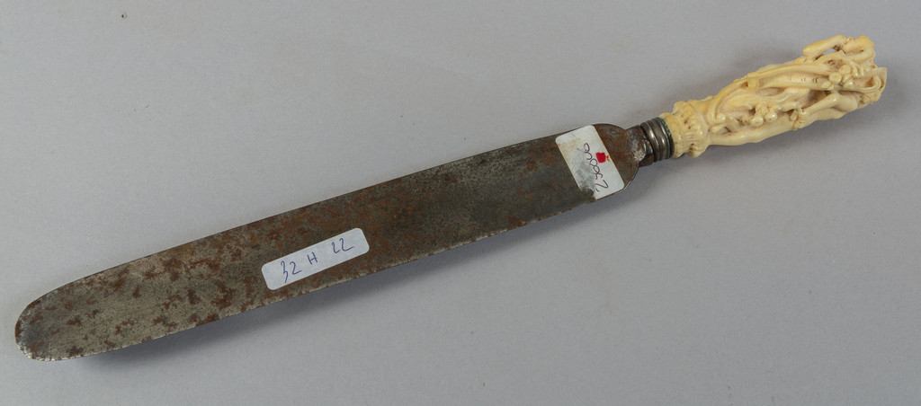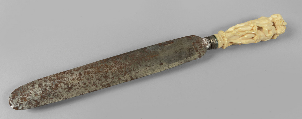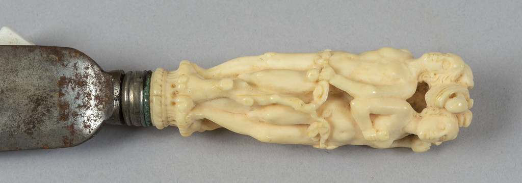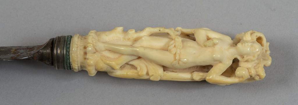 Antico tagliacarte con manico in avorio scolpito raffigurante Adamo ed Eva sec.XVII