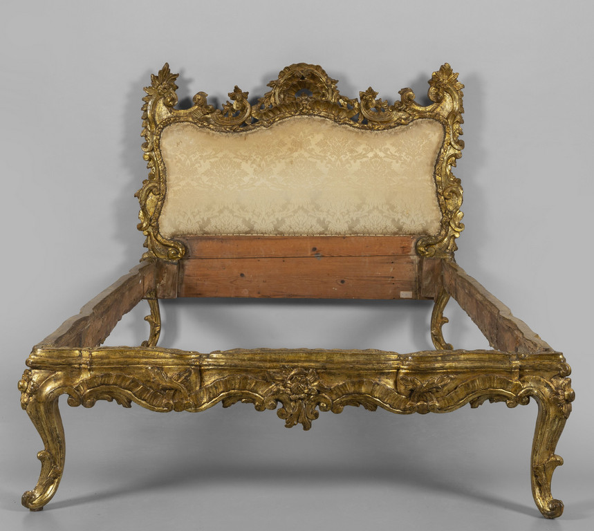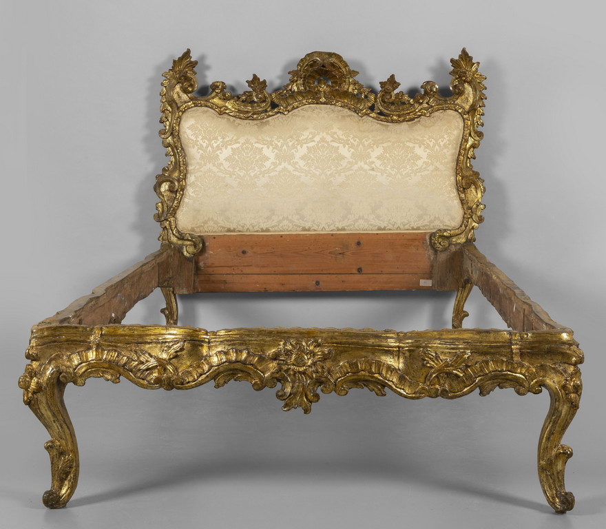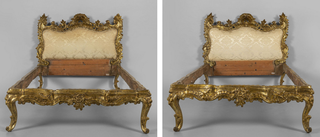Coppia di letti in legno finemente intagliato e dorato a mecca Roma I metà sec.XVIII