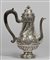 Rara caffettiera in argento finemente sbalzato con motivi decorativi di fiori ordinati lungo linee inclinate che creano il movimento solitamente suggerito con nervature in torsione sul corpo dell'oggetto Genova punzone della Torretta anno 1791