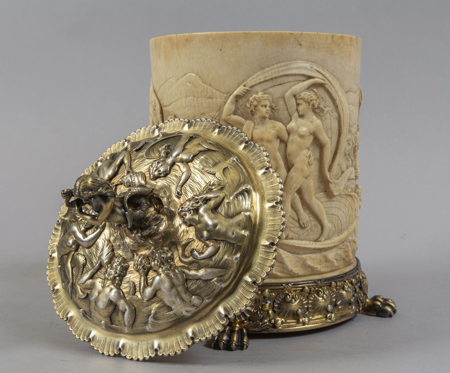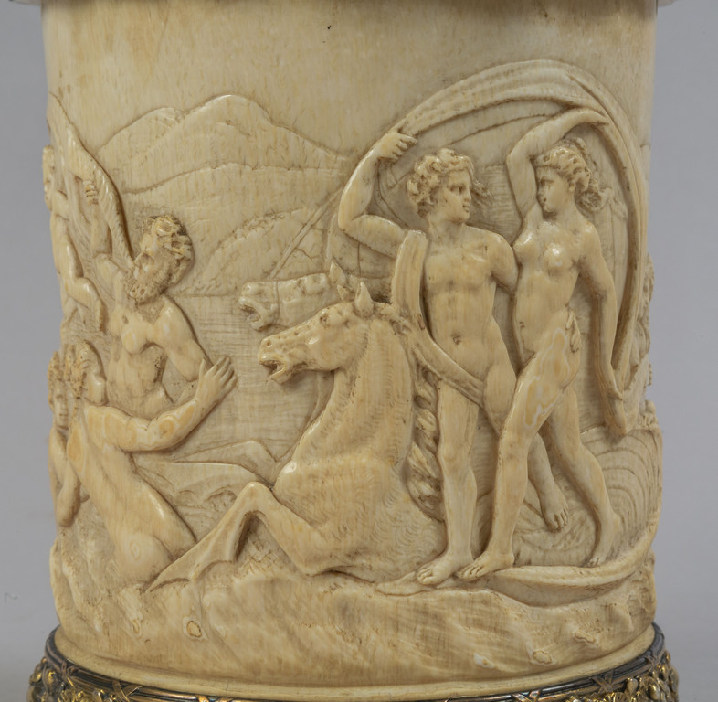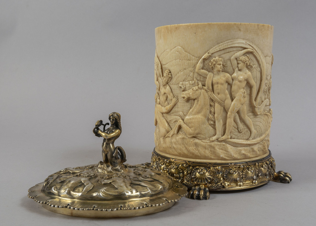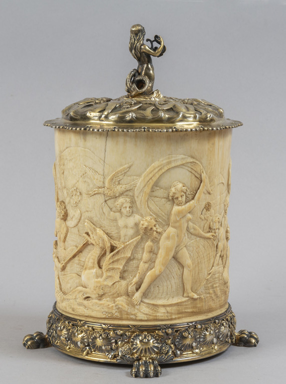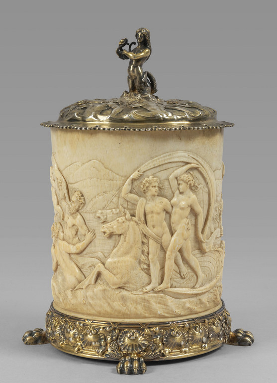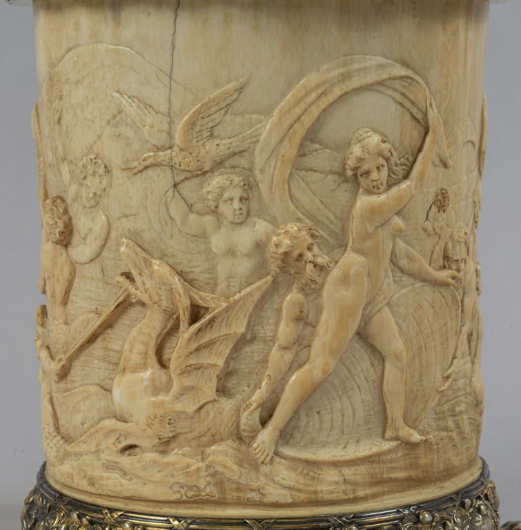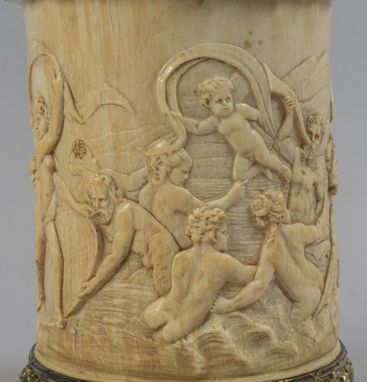 Tankard in avorio finemente scolpito e argento vermeille f.to Tiffany & Co fine sec.XIX