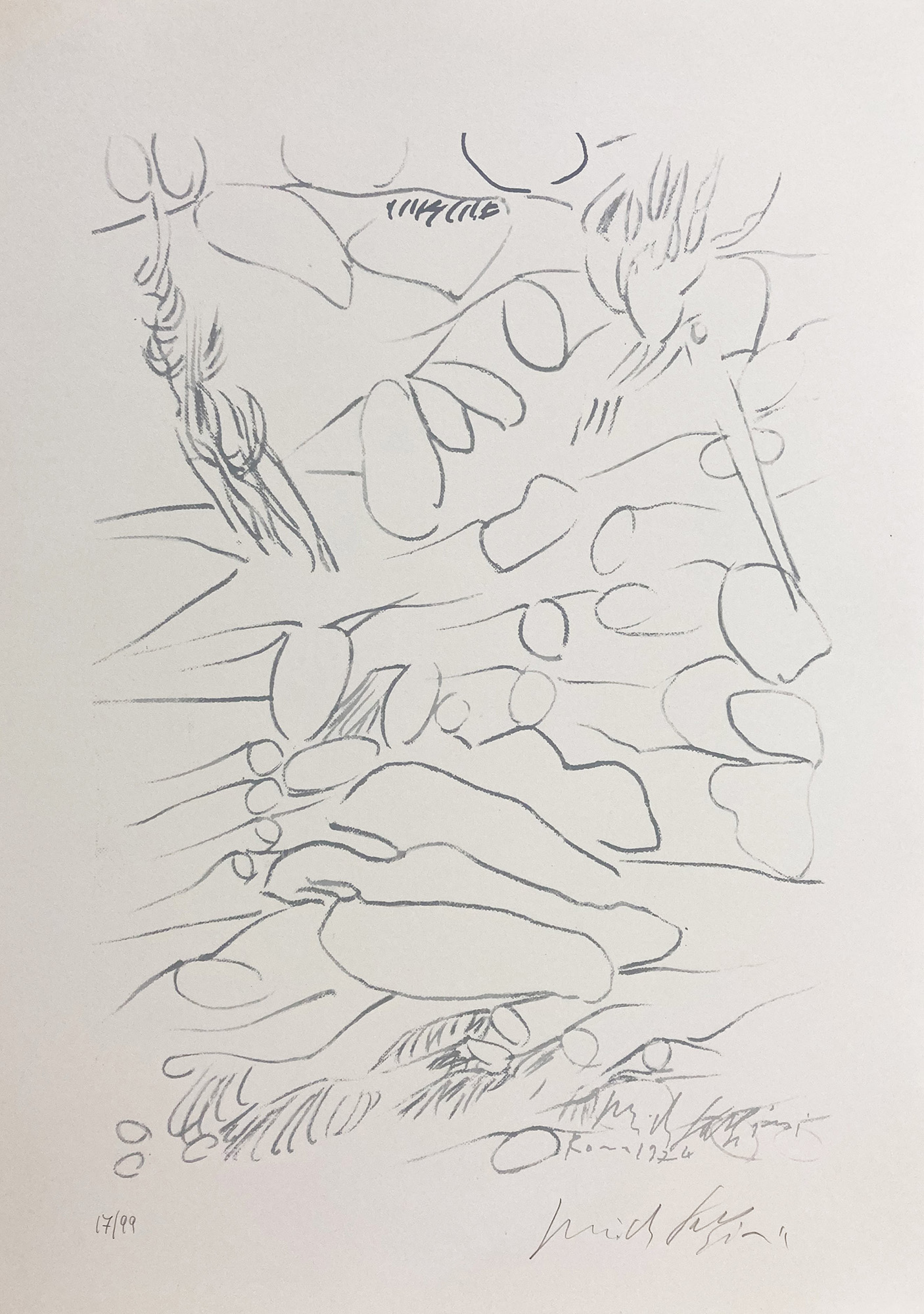 Tutte con firma a matita sul margine in basso a destra: Pericle Fazzini, tiratura in basso a sinistra: 17/99; di cui 6 con firma, luogo e data in lastra in basso a destra: Pericle Fazzini / Roma 1974.