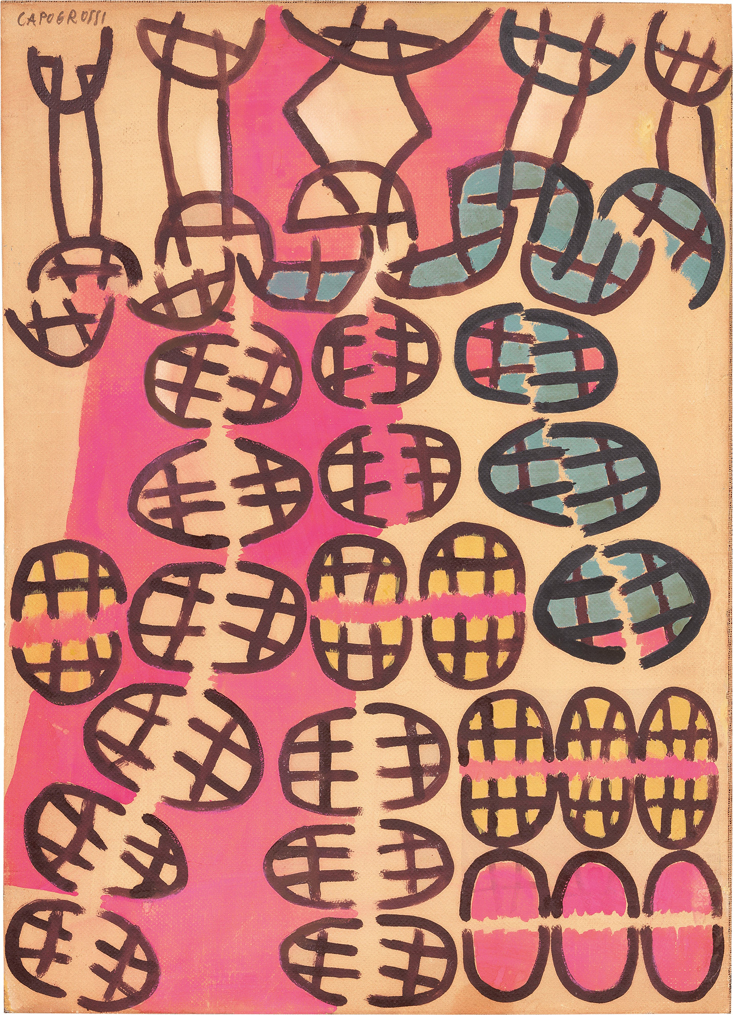 Firma in alto a sinistra: Capogrossi; data e titolo al verso sul telaio: 1950 Sup. G. 99.