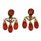 Orecchini in oro giallo e coralli con piccoli serpenti e gocce pendenti sfaccettate a briolet.