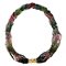 Collana multicolor composta di 9 fili multicolori in pietre naturali semipreziose (prob. tormaline) e fermezza in oro giallo a forma di torciglione pesante.
