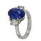 Anello in oro bianco '3 pietre' al centro grande zaffiro taglio cabochon di ct. 7 75 e ai lati due diamanti taglio demi' lune per stimati ct. 0 95.