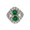Anello in platino di fine fattura a boule con contrarie' di smeraldi taglio rotondo per stimati ct. 2 40 complessivi e diamanti per stimati ct. 2 50.