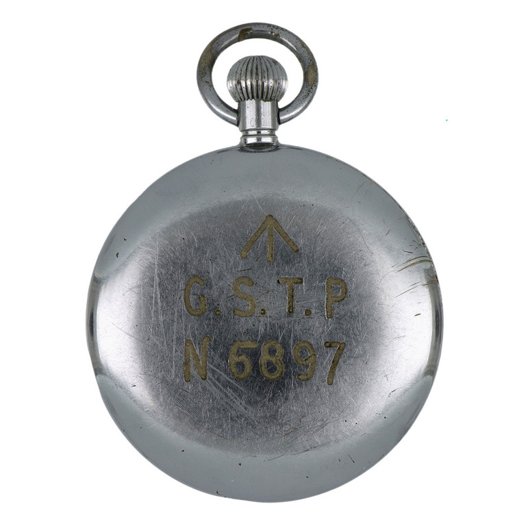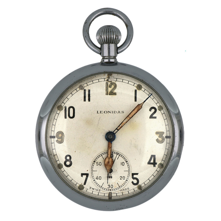 Leonidas raro orologio da tasca militare inglese assegnato al n. 6897 in metallo.