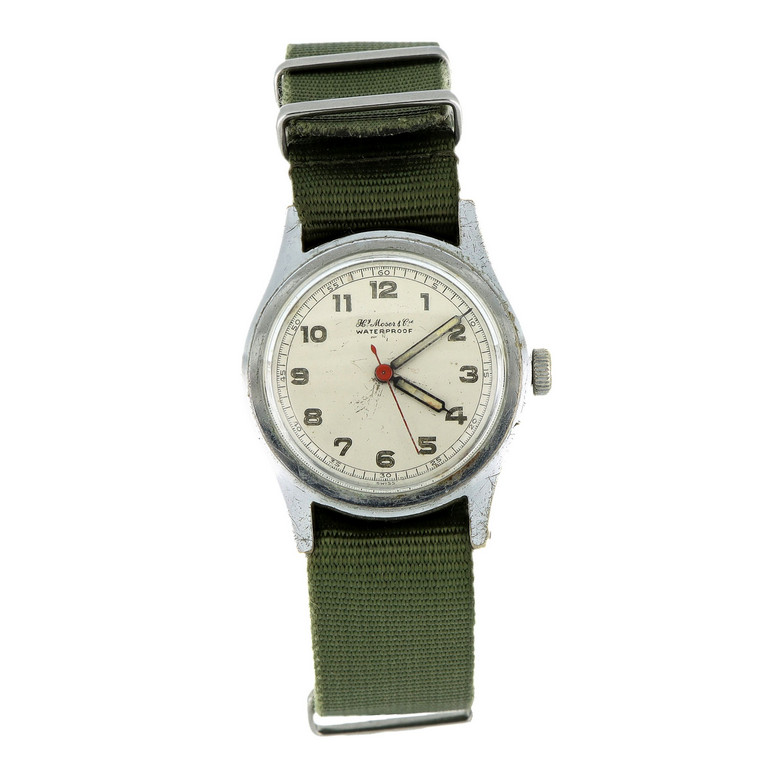 H.Moser e Cie orologio da polso in acciaio professionale diametro cassa 31 mm movimento meccanico a carica manuale quadrante argente' con numeri arabi sfere a daga e lancetta dei secondi rossa.