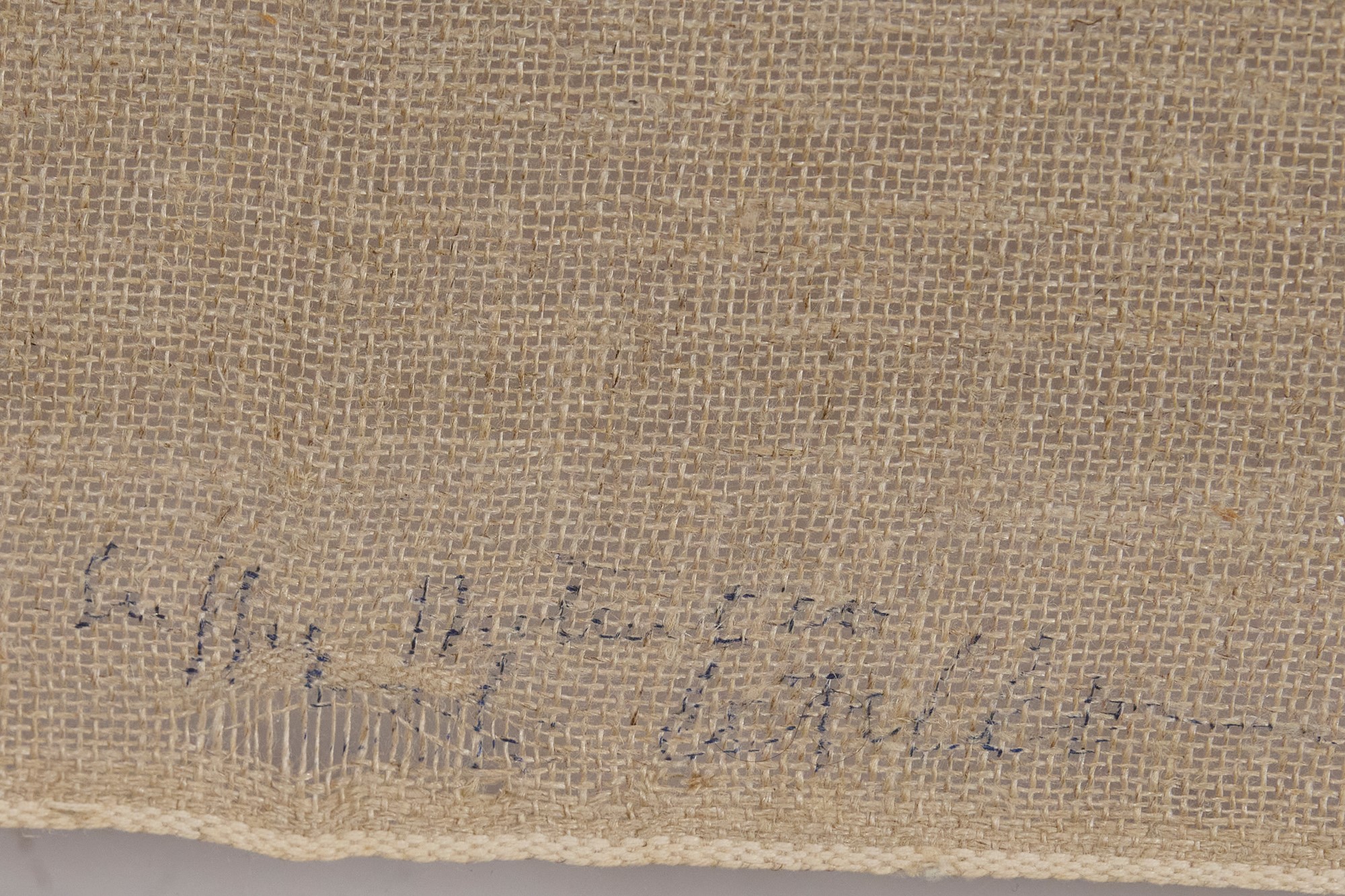 Lettera di autenticità dell'Archivio "Giorgio Griffa", con firma dell'Artista, timbro a secco "Archivio Giorgio Griffa"con n° AGG1975-104 e descrizione.