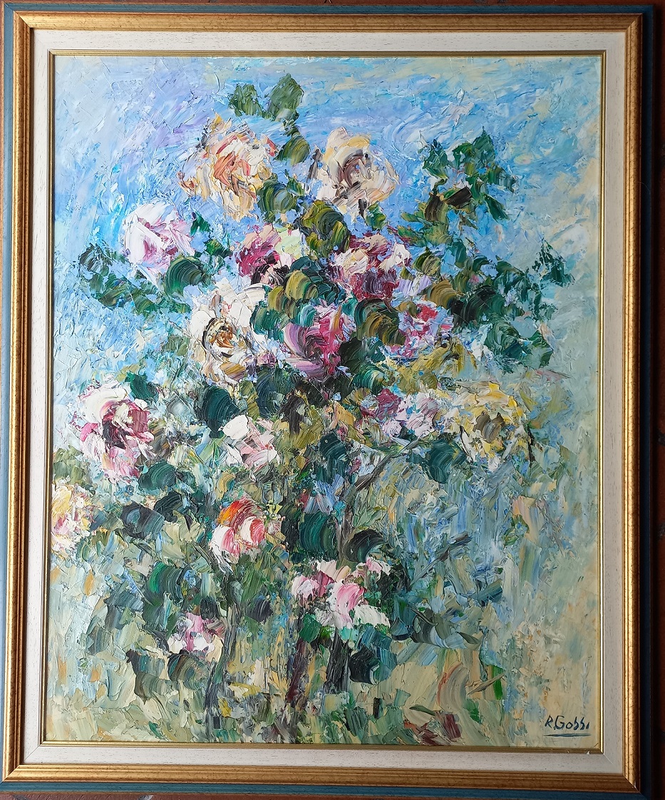 Gobbi Renato - Dalla mia finestra 1997 - olio su pannello cm.90,6x75,2 firmato in basso a destra - titolato, datato e firmato al retro