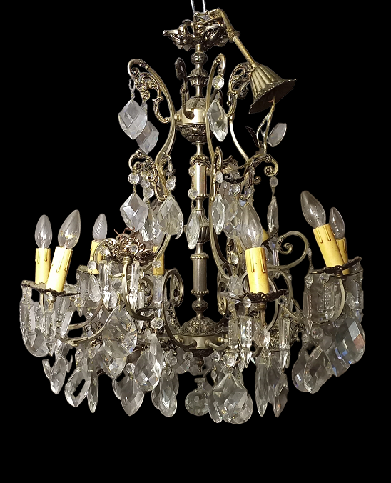 Lamadario in metallo e cristallo a dieci luci