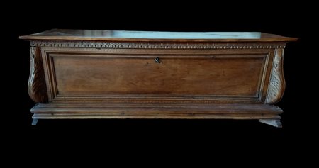 Cassapanca in legno di noce recante motivi intagliati a foglie d'acanto cm.167x54 h.cm.67 - XVIII secolo