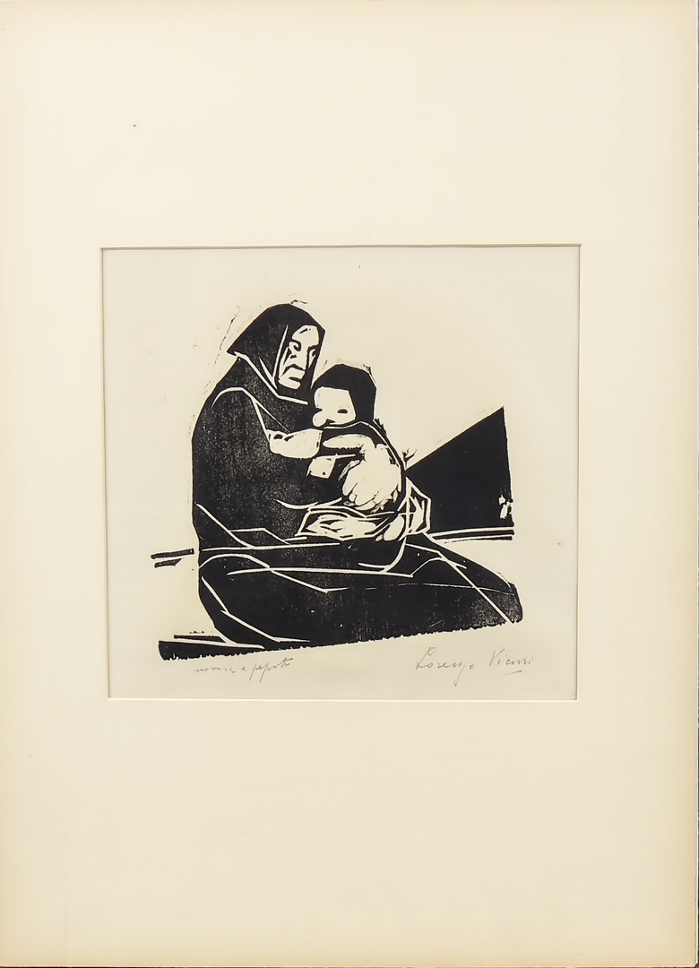 LORENZO VIANI (1882-1936) Nonna e nipote xilografia, firmata e titolata Reca iscrizione in basso a destra ''Uffizzi''