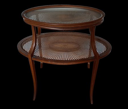 Tavolo d'appoggio con vassoio amovibile in legno intagliato e filettato e paglia di Vienna cm.87x49 h.cm.87