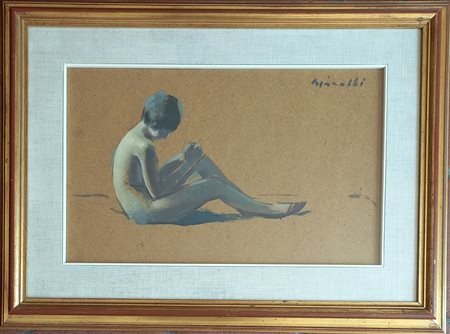 Giacobbi Ernesto (1891-1964) - Nudo femminile seduto - olio su faesite cm.31,5x50 firmato in alto a destra