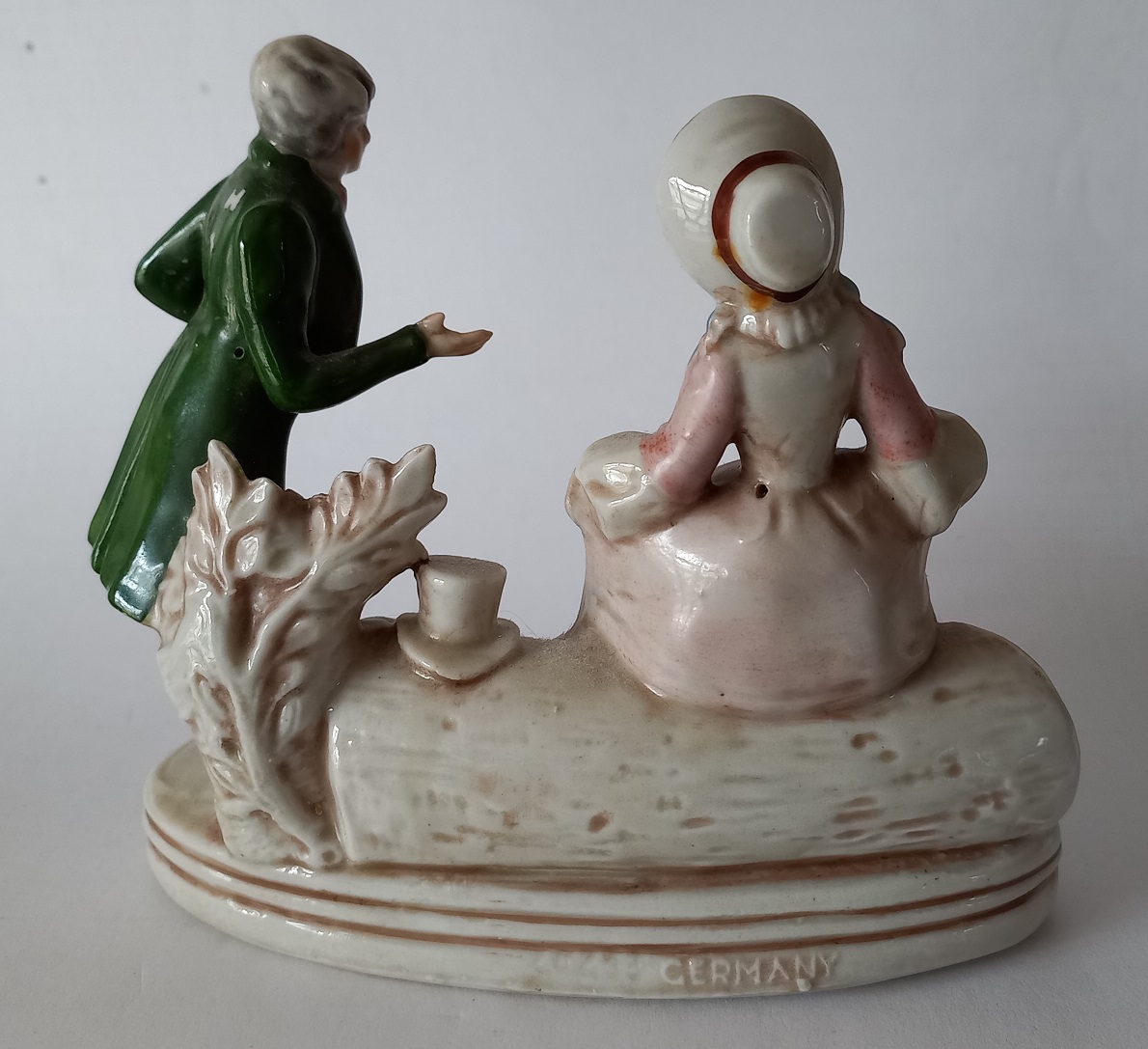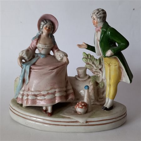Gruppo in porcellana policroma h.cm.12,5 - manifattura tedesca - marchio alla base - lieve caduta di colore alla giacca maschile