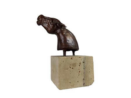 Cassinari Bruno (1912-1992) - Testa di cavallo in bronzo firmata alla base su base in travertino h.cm.14