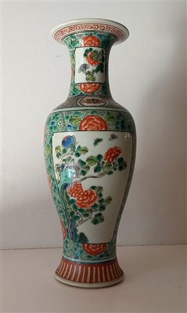 Vaso orientale in porcellana decorato in policromia con elementi floreali h.cm.35