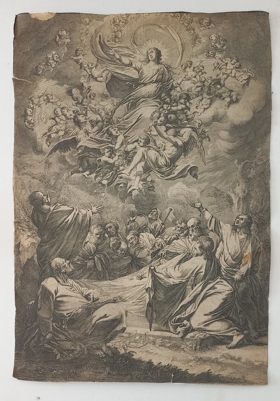 Antica acquaforte smarginata a soggetto sacro mm.503x357 senza cornice - lievi macchie e lievi strappi