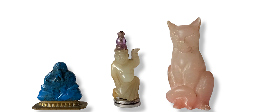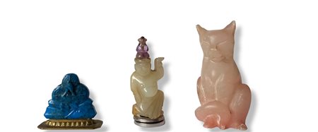 Gattino in giada rosa, Figura montata a ciondolo, Piccola scultura in pietra dura h.max cm.7,5
