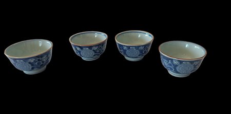 Quattro coppette in porcellana decorata in blu a motivi floreali h.cm.5 -...